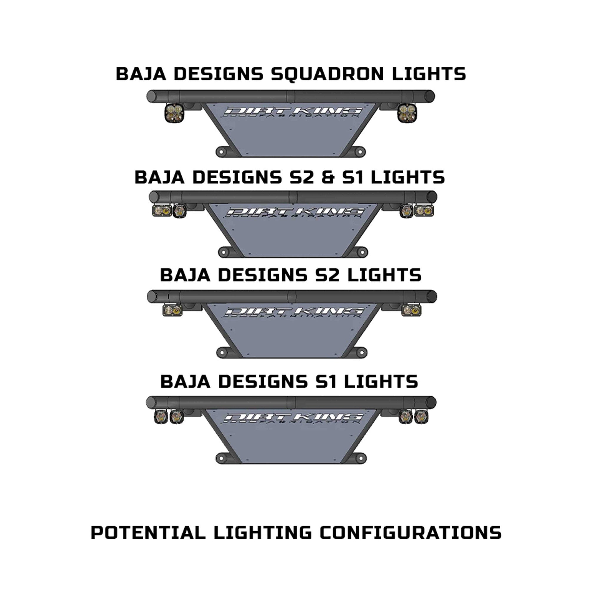 The Dirt King prerunner bumper is a perfect addition to any off-road Silverado 1500 or Sierra 1500. It gives the front end that finishing touch as well as providing a strong structure to withstand the punishment seen in off-roading. The bumper is CAD designed and constructed with DOM tubing. We offer several options allowing you to customize it to your preferences. The standard bumper comes raw metal with an aluminum Dirt King skid plate. This bumper bolts into the factory holes on the frame and works with a trimmed factory bumper shell or our high clearance fiberglass bumper shell. Most 2016-2018 Silverado's didn't come equipped without fog lights so we offer the correct bumper shell that can be purchased along with the tubular bumper. If you plan on installing this bumper with the Fiberwerx fenders and valance you will need to custom mount lights to fill the void. Returns or cancelations on powder coated bed cages are subject to a 10% restocking fee.